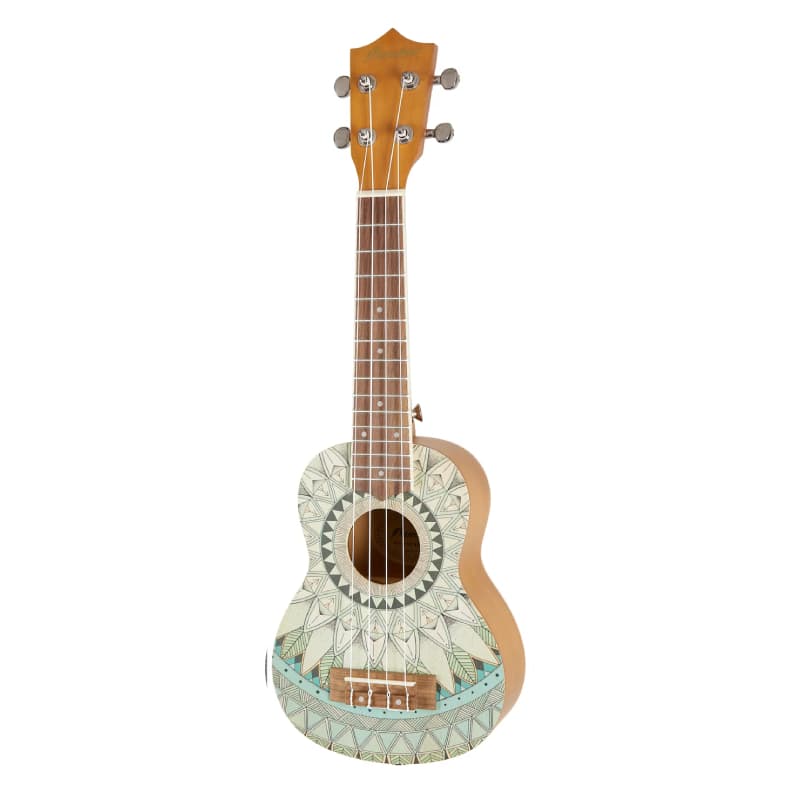 Řada New Generation značky Bamboo představuje cenově dostupná ukulele v koncertní a sopránové velikosti ozdobená pestrobarevnými grafickými motivy.